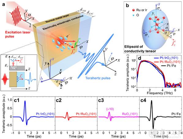近日,物理学系吴义政、陶镇生课题组合作系统研究了RuO2和IrO2-金属异质结器件的太赫兹发射特性,揭示了一种全新的非相对论、非磁性的太赫兹产生机制。相关成果以“Nonrelativistic and nonmagnetic terahertz-wave generation via ultrafast current control in anisotropic conductive heterostructures”为题发表在Advanced Photonics上。