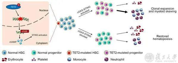 7.生物医学研究院石玉衡与合作者报道了cGAS-STING通路在介导TET2缺失导致的CH发生中的作用