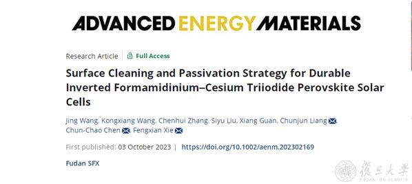 1.信息学院解凤贤提出耐用反式甲脒-铯钙钛矿太阳能电池的表面清洁和钝化策略
