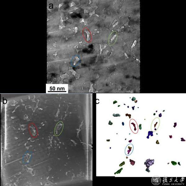 10月31日,现代物理研究所张宏亮课题组利用之前发展的一种基于机器学习的方法,精确量化了氧化层不同区域的纳米孔隙。通过TEM,实现了整个氧化层深度及层内每个孔隙的成像和三维层析重建。研究进一步探讨了孔隙的互连性及其作为氧化深度、暴露时间和腐蚀速率函数的最短路径。结果表明,互连性在水/氧化物(W/O)界面附近最高,并向金属/氧化物(M/O)界面逐渐减少。特别是,更高的温度、更长的暴露时间和更高的腐蚀速率与孔隙间增加的互连性相关。相关成果以“3D reconstruction and interconnectivity quantification of the nano-porosity in the oxide layer of corroded Zr alloys”为题发表在Corrosion Science。