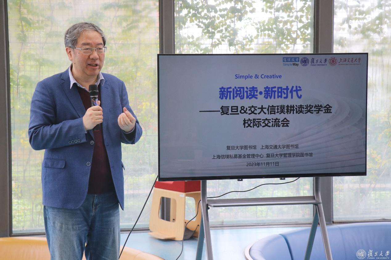 天红霜有信,星晕雨先期。11月11日,复旦大学、上海交通大学两校师生在复旦大学管理学院图书馆展开了一场别开生面的阅读和思想碰撞的交流活动——第二期信璞耕读奖学金校际交流会。活动由复旦大学图书馆、上海交通大学图书馆、复旦大学管理学院图书馆联合主办。