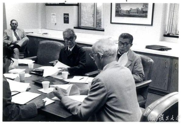 1985年8月,徐苏恩(右一)在美国听结核病权威Dr.Corustock教授介绍经验