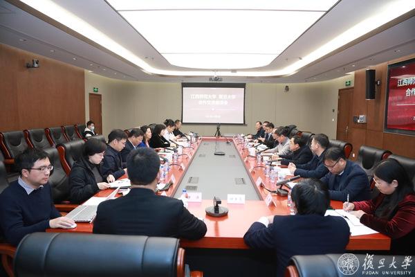 12月5日上午,江西师范大学校长、中国工程院院士陈芬儿一行来复旦大学考察交流,共话校际合作发展之道。合作交流座谈会在逸夫楼举行。