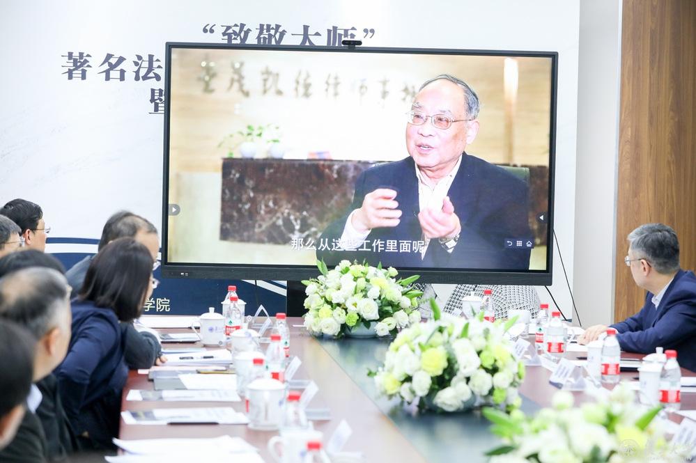 纪录片《法学宗师李昌道》拉开了追思会的序幕。该片系统展示了李昌道教授辉煌的一生,他在法学教学、法学研究、立法实践、司法实践、法治议政、法律仲裁、法制宣传法律服务这八个方面均作出了卓越的贡献,让大家倍感敬佩与感恩。