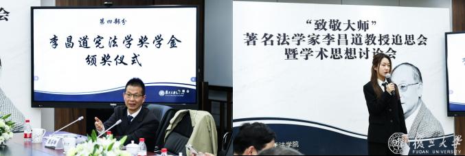 李昌道教授心系法学教育,其指导的学生秉承其意愿设立了李昌道宪法学奖学金,奖励后人。奖学金颁奖仪式由上海市长兴岛管委会原工会主席、1996级研究生栗春坤主持,奖学金管理小组负责人、复旦大学法学院教授季立刚介绍了奖学金评选情况并宣布评选结果,对获奖学生进行颁奖。一等奖获奖学生沈菁怡同学作为代表发表获奖感言。