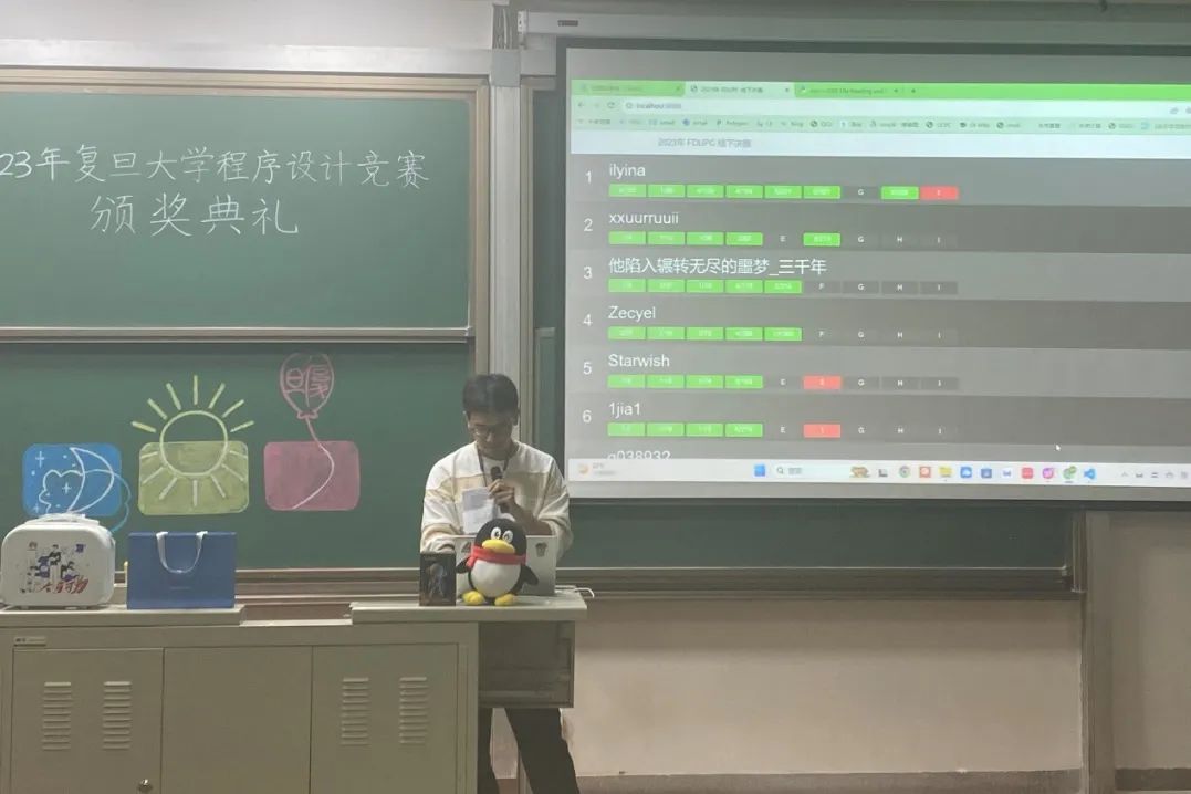 10月22日下午,2023年复旦大学程序设计竞赛在邯郸校区成功举行。本次比赛由复旦大学计算机科学技术学院主办,复旦大学程序设计竞赛队承办。今年程序设计竞赛的网络预选赛参与人数超过200人。来自全校18个不同专业的78名同学通过选拔进入现场总决赛,2023级临床医学专业学生章子文凭借7题的通过数和罚时优势成为本场比赛的冠军。