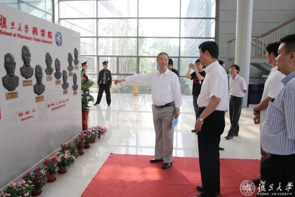2009年12月,桑国卫视察张江校区药学院新址,并为“复旦大学药学院” 题词