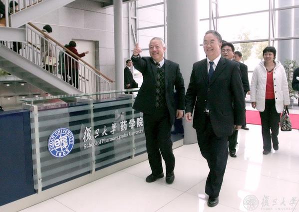 2010年5月25日,桑国卫赴复旦大学张江校区药学院视察,座谈并参观实验室