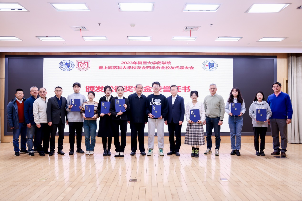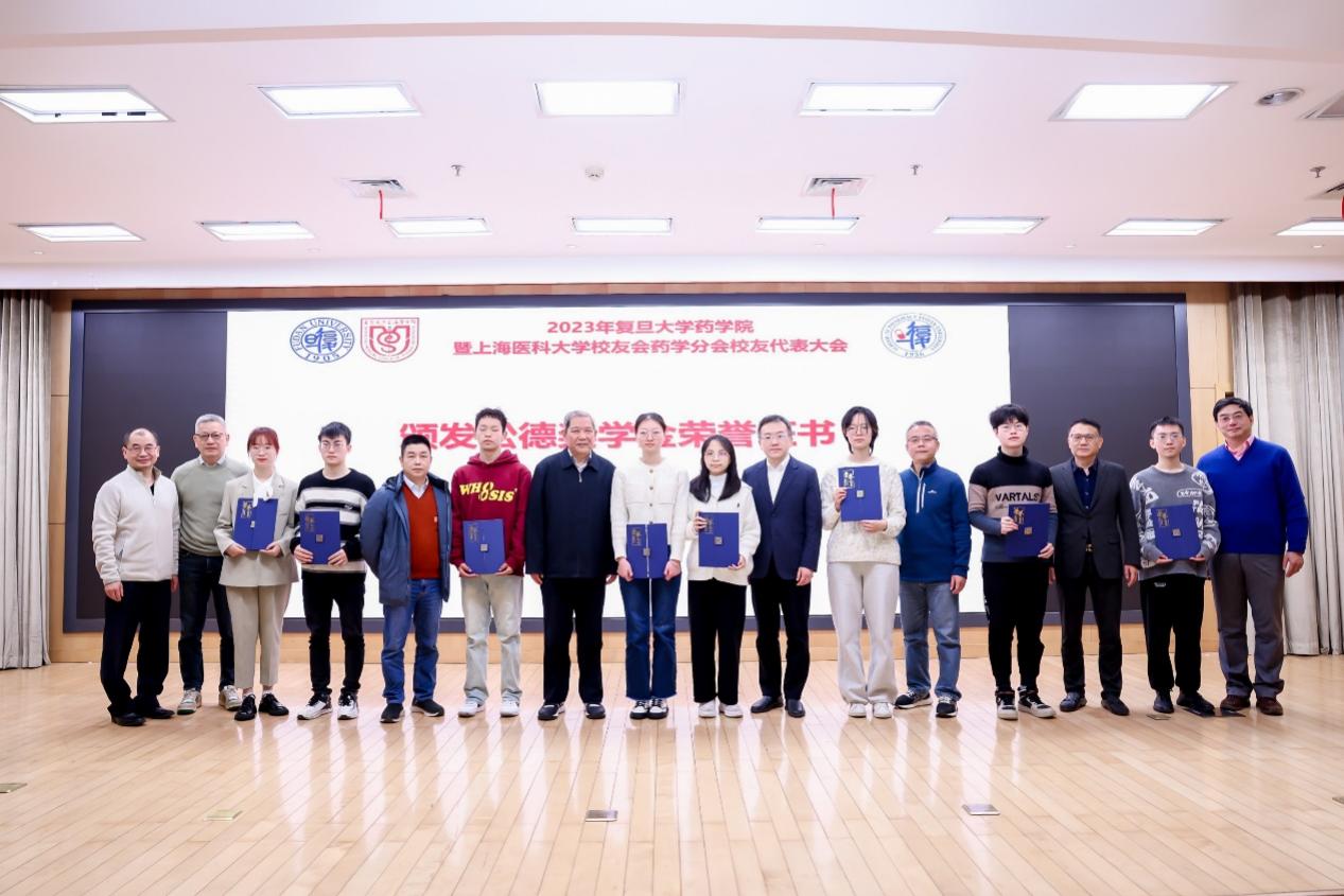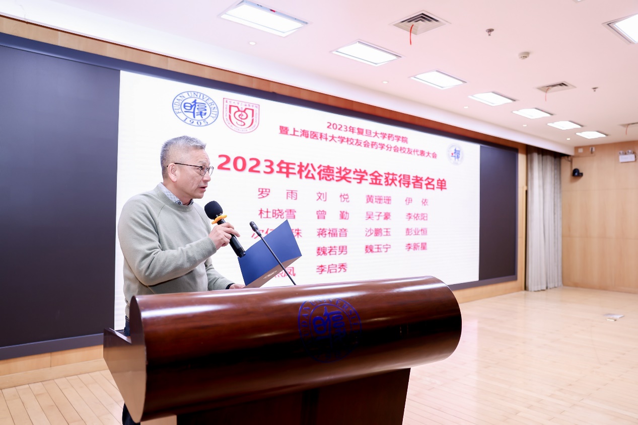 松德基金首批发起人之一、上医校友会药学分会副会长兼秘书长张元华宣读了2023年松德奖学金获得者名单,与会领导和基金发起人代表向获奖同学颁发了荣誉证书。