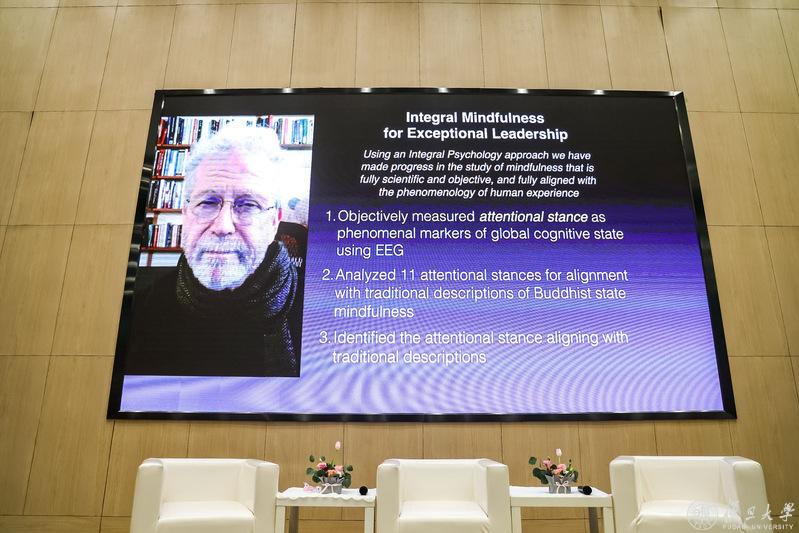 《国际整合与超个人心理学》学术期刊主编Glenn Hartelius 教授通过视频进行了题为“适合现代人生活的整合冥想”的主题演讲,对其在美国心理学学会马斯洛成就奖的获奖研究项目进行了介绍。他指出,传统正念更多用心,认知方法更多集中注意力,两者结合可以令人生活得更加完整。