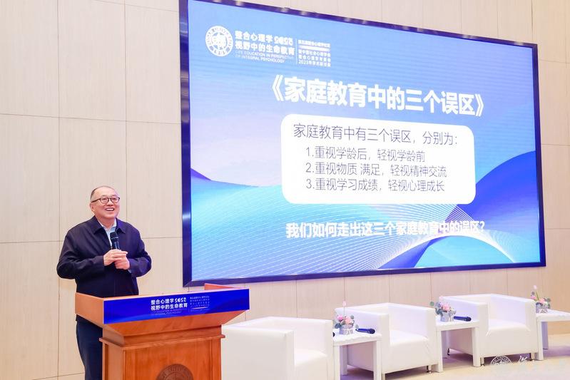 世界心理治疗协会副会长、同济大学人文学院教授赵旭东演讲的主题是“家庭动力学对儿童青少年生命观的影响”,他认为生命教育最重要的是让孩子有爱的能力,要重视对学生情感和价值观的培养。
