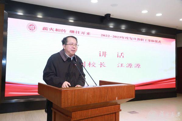 汪源源在讲话中介绍了过去两年全校在“第一个复旦”建设中取得的成绩,并向为学校建设发展作出贡献的荣休教职工致以感谢。他表示,希望荣休教职工退休不退志、离岗不离心,继续关心、关注和支持学校发展,为学校改革事业发展继续贡献力量;希望青年教职工向荣休教职工学习,传承和弘扬老一辈复旦人爱国奉献、追求卓越的精神品质,树立“躬耕教坛、强国有我”的志向和抱负;学校党委将创造条件为退休老师们多办实事,多办好事,为荣休教职工继续支持学校工作、关心关爱下一代搭建桥梁。