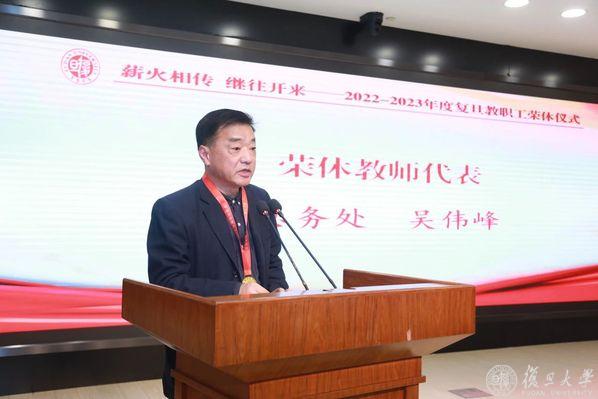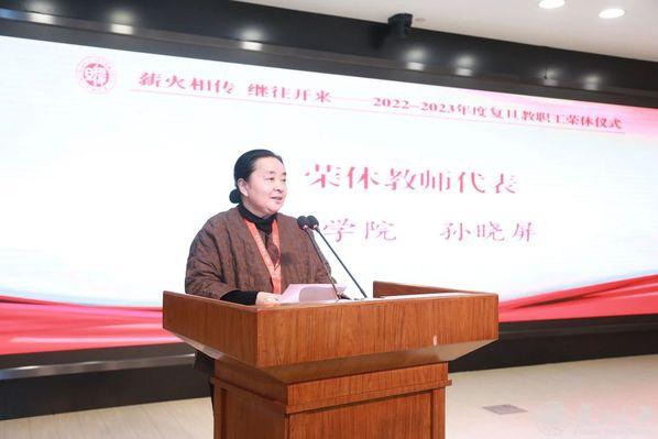 12月26日,由党委教师工作部、人事处、退休教职工工作处、校工会共同主办的“薪火相传 继往开来——2022-2023年度复旦大学教职工荣休仪式”在邯郸校区光华楼东辅楼102报告厅举行。
