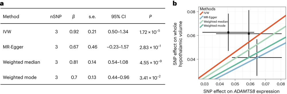 图6:ADAMTS8基因表达与下丘脑体积间的孟德尔随机化分析