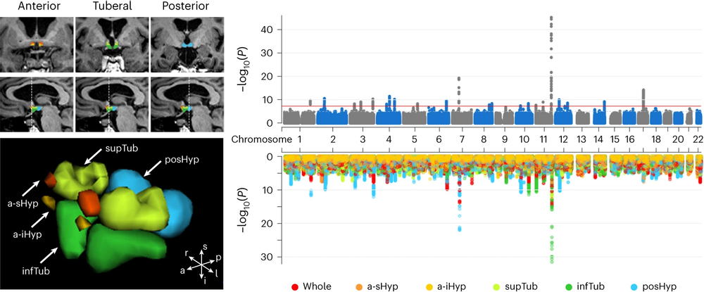 下丘脑在人体生理功能中扮演着至关重要的角色,作为调节多种新陈代谢并控制自主神经系统的重要脑区,下丘脑直接影响人类的昼夜节律、食欲和血压等生理过程。同时,下丘脑还涉及认知和情感等高级功能,其参与精神分裂症、抑郁症和痴呆症等神经精神疾病的发病机理也受到广泛关注。尽管下丘脑对人类生理和健康有着举足轻重的作用,然而其遗传学研究仍十分缺乏。探索下丘脑的遗传结构能够加深我们对脑疾病内在机制的理解,对于促进脑健康研究具有重大的科学价值与临床意义。