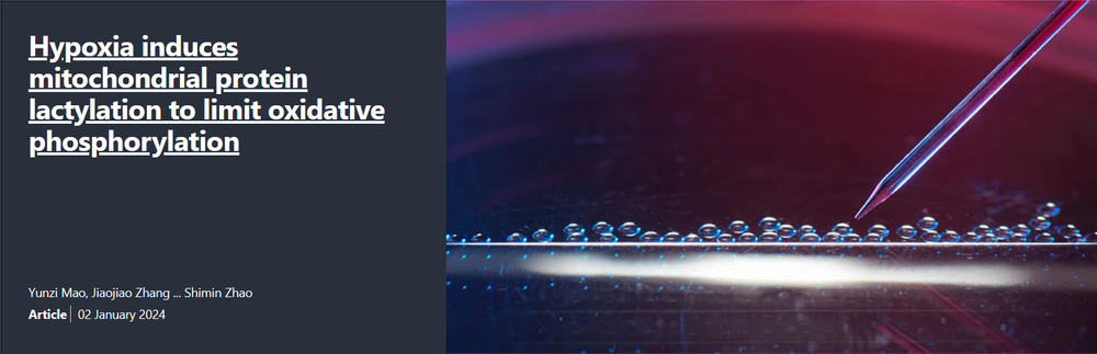 2024年1月2日,复旦大学赵世民教授/徐薇研究员合作在Cell Research杂志发表题为“Hypoxia Induces Mitochondria Protein Lactylation to Limit Oxidative Phosphorylation”的封面论文发现线粒体蛋白质乳酰化修饰被肌肉细胞低氧激活,表征运动程度,并通过抑制线粒体氧化磷酸化预防过度运动损伤。