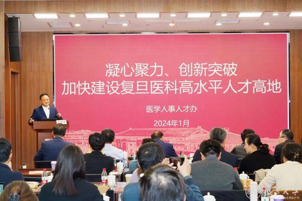 复旦大学校长、上海医学院院长金力,复旦大学党委副书记、上海医学院党委书记袁正宏,上海医学院党政领导杨伟国、徐军、吴凡、朱同玉、丁强,学校和上海医学院相关职能部门负责人、附属医院及各院所平台党政负责人、各二级单位人才工作负责同志出席会议。会议由上海医学院党委副书记杨伟国主持。