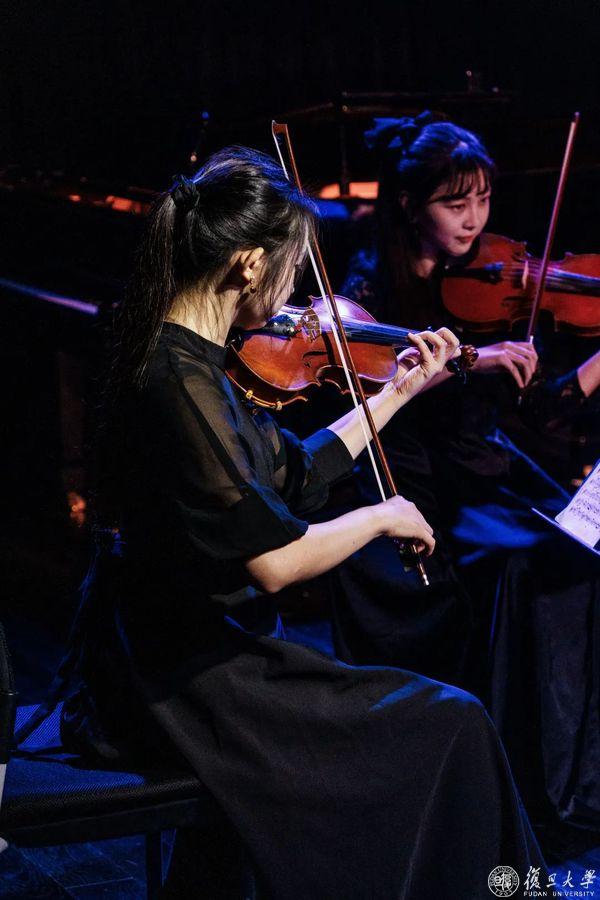 1月14日,“赠你一支古典玫瑰”复旦大学学生弦乐团2024新年音乐会在东区艺术教育中心举行。当音符与玫瑰翩翩飘舞,古典之美在空灵的琴音中悄然绽放。