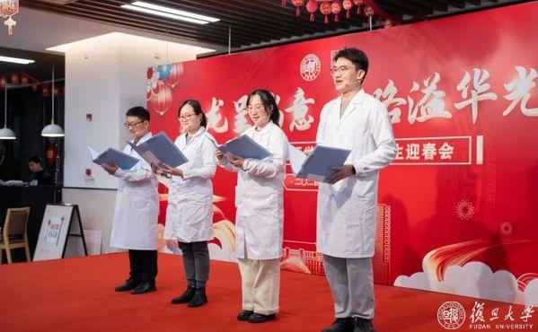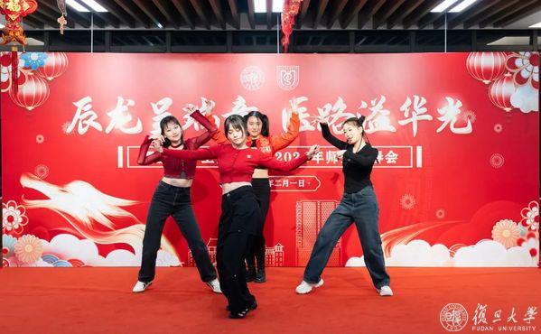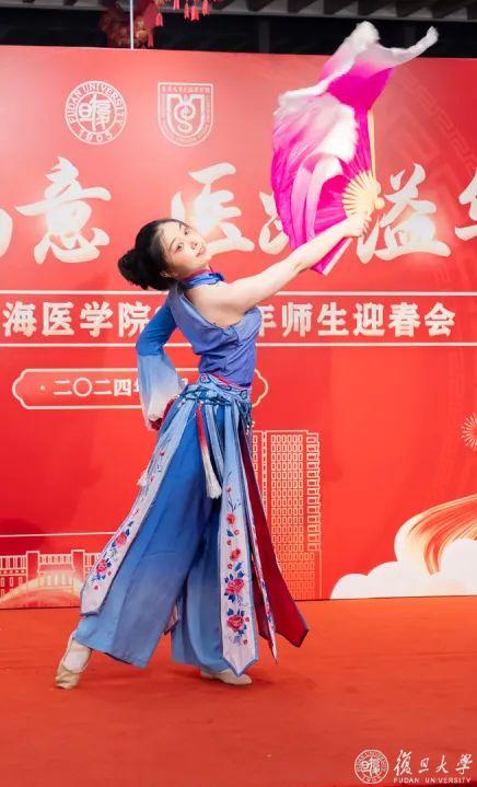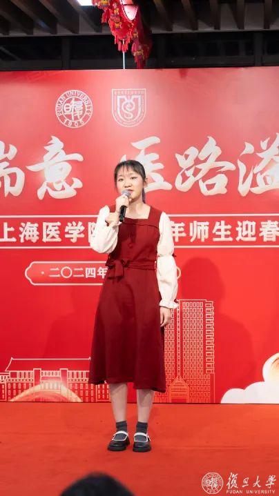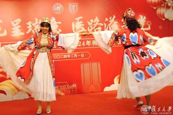基础医学院学工组长米热依古丽·卡德尔和中山医院本科生苏比努尔·买买提的民族舞蹈《起舞》共同表达对美好生活的赞美与热爱。华山医院研究生董旭宸、罗威、张晓、许锴演绎了科普短剧《腰椎病,没痛不难,科学康复宝典》,带来一场历史与现代医学的奇妙邂逅。中山医院学工组长张洪寅子、西苑学生生活园区管理督导员郭红华、华山医院本科生朱心怡用歌曲串烧《龙文》《我和我的祖国》《如愿》表达新春祝福。