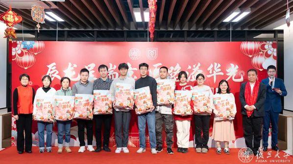 迎春会伊始,郑锦和金力向学生代表发放新春慰问礼包,并祝愿同学们新的一年身体健康、阖家欢乐,书写上医故事。