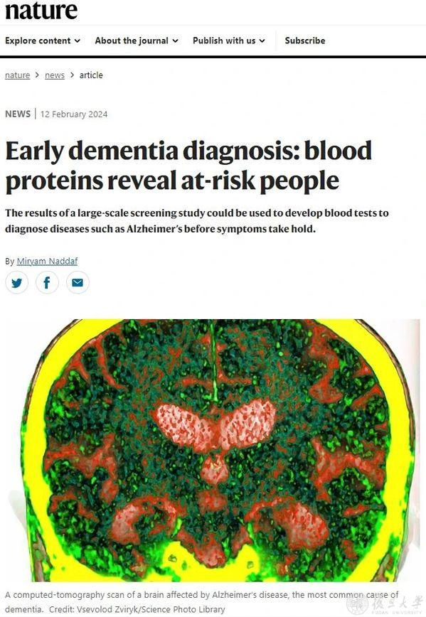 Nature主刊以《早期痴呆诊断:血液蛋白标志物识别高风险个体》(Early dementia diagnosis: blood proteins reveal at-risk people)为题,评价这项工作“标志着向能在早期无症状阶段检测阿尔茨海默病及其他类型痴呆的血液检测方法迈进了一步,这一目标正是科学家们几十年来一直在探寻的。”