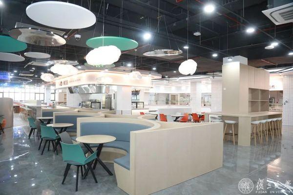 走进江湾校区四号门,远远就能望见新落成的江湾北食堂。新食堂共有座位数近1400个,通过翻台,可满足单餐4500人次用餐。
