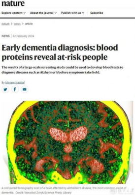 2月13日,类脑智能科学与技术研究院冯建峰/程炜课题组联合附属华山医院郁金泰团队展开联合攻关,研究结果支持血浆蛋白GFAP可提前15年预测痴呆发病风险,对痴呆高危人群的筛查和早期干预意义重大。研究成果以“Plasma proteomic profiles predict future dementia in healthy adults”为题,发表在Nature Aging。Nature主刊以“Early dementia diagnosis: blood proteins reveal at-risk people”为题,评价这项工作“标志着向能在早期无症状阶段检测阿尔茨海默病及其他类型痴呆的血液检测方法迈进了一步,这一目标正是科学家们几十年来一直在探寻的。”