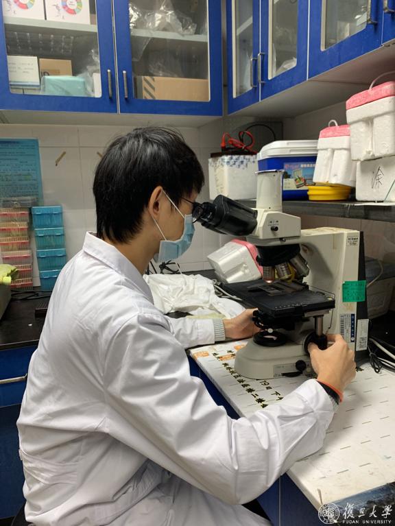 林子杰在中心观察检案切片