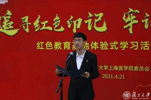 曲麟昊在复旦上医红色教育基地启动仪式上作为党支部书记代表发言