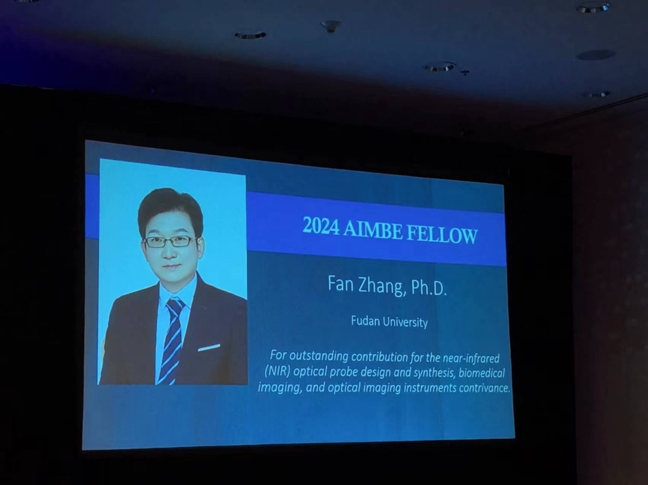 当地时间2024年3月25日,美国医学与生物工程学会(AIMBE,American Institute for Medical and Biological Engineering)公布了2024年 Fellow名单,复旦大学化学系教授张凡“因其在近红外探针设计与合成、生物医学成像和光学成像仪器设计等方面的杰出贡献”入选。3月25日,张凡在美国华盛顿参加颁奖典礼上的授证仪式。