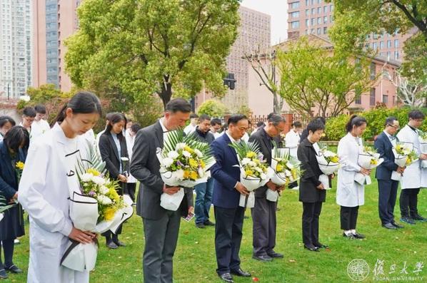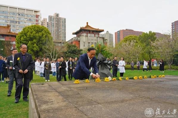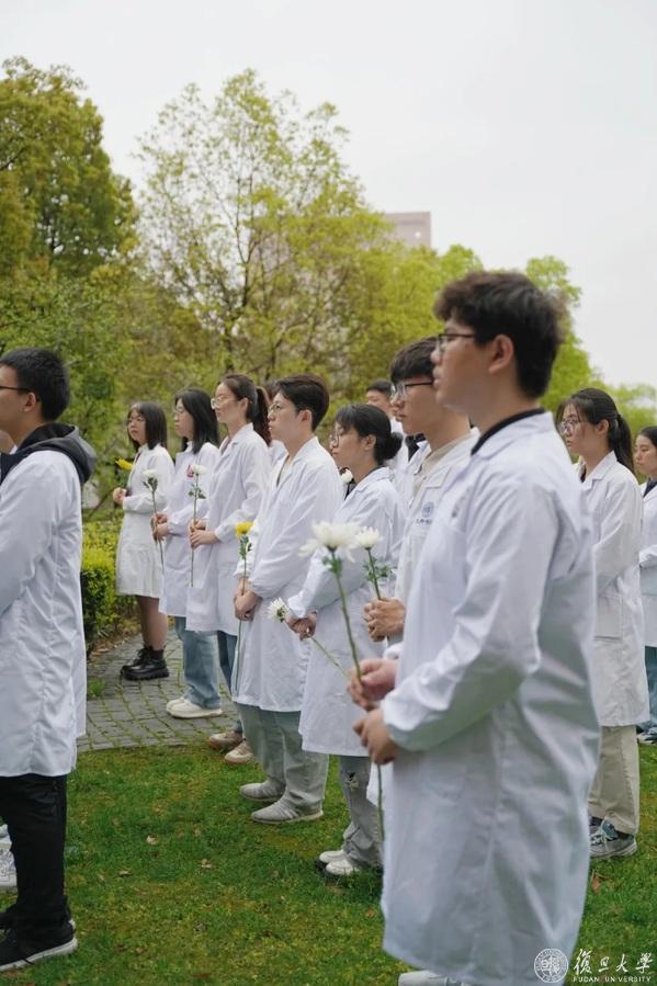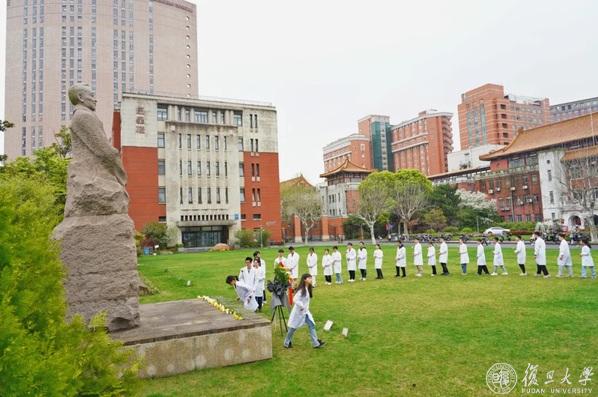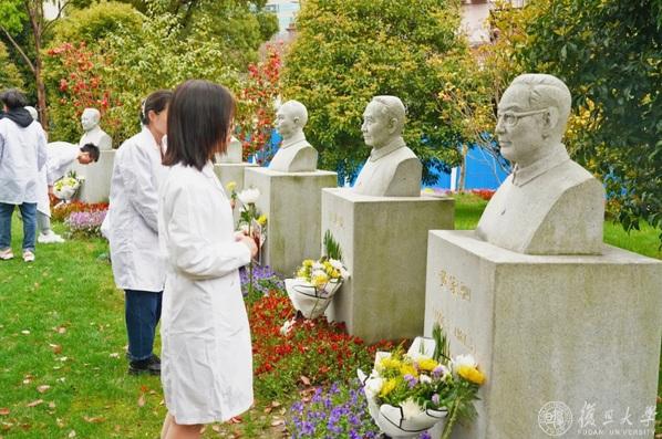 4月3日一早,复旦上医师生代表来到福庆广场、誓言广场、同生广场,追思缅怀上医先贤。