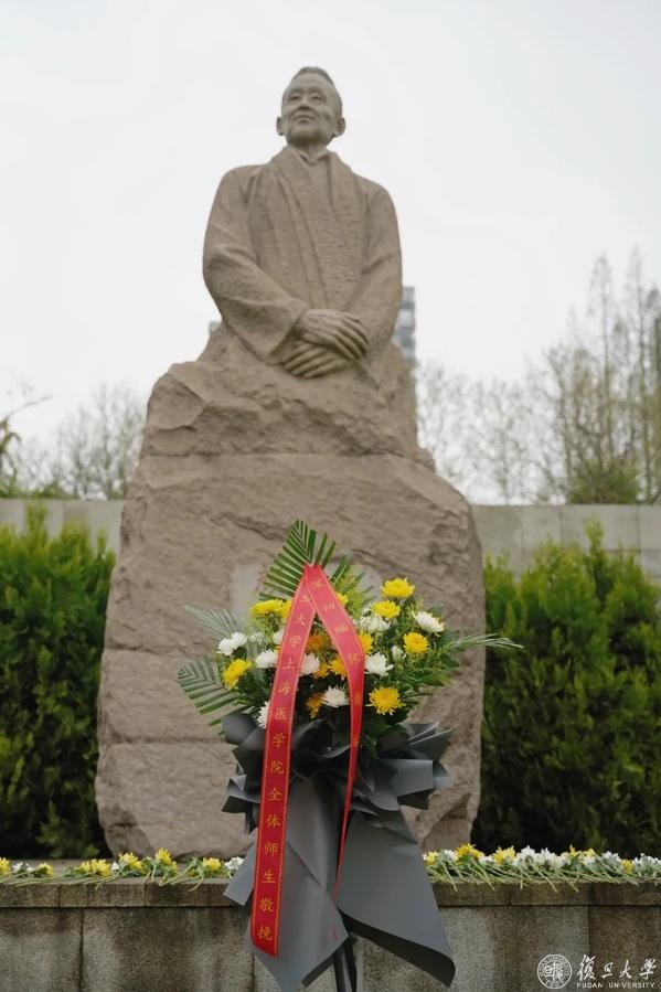 随后,师生代表前往同生广场,纪念缅怀上医原党委书记、院长陈同生,敬献花篮。陈同生在担任原上海第一医学院党委书记兼院长的时间里,高瞻远瞩,实事求是,带领上医稳定发展,克服重重困难,为祖国医学教育事业做出了巨大贡献。