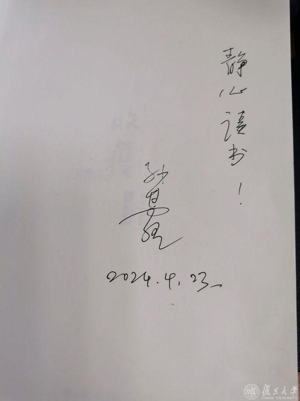 采访结束,他寄语复旦学子:“静心读书”。那是一位作家,也是一位老师对学子的期待。