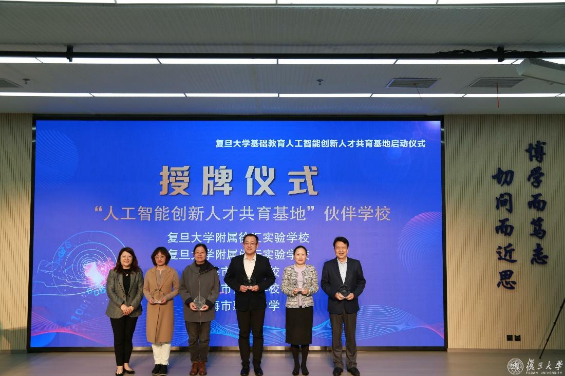 中小学人工智能教育的未来在于所有学校的共同进步,基地的建设发展也离不开共研共进的伙伴,在“人工智能创新人才共育基地”伙伴学校授牌仪式上,复旦大学附属徐汇实验学校、复旦大学附属闵行实验学校、上海市育鹰学校、上海市黄兴学校、上海市惠民中学成为了共育基地的首批伙伴学校。