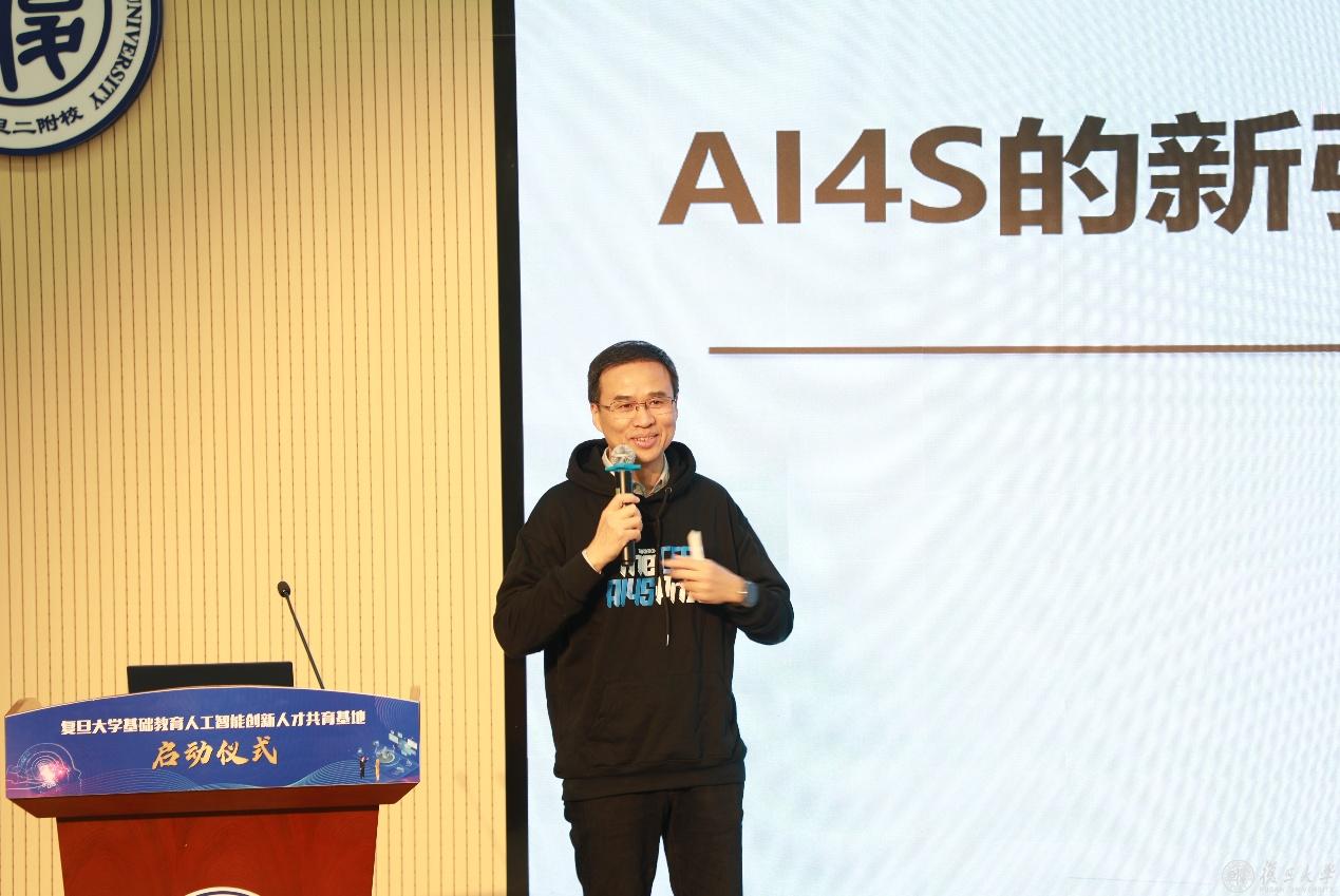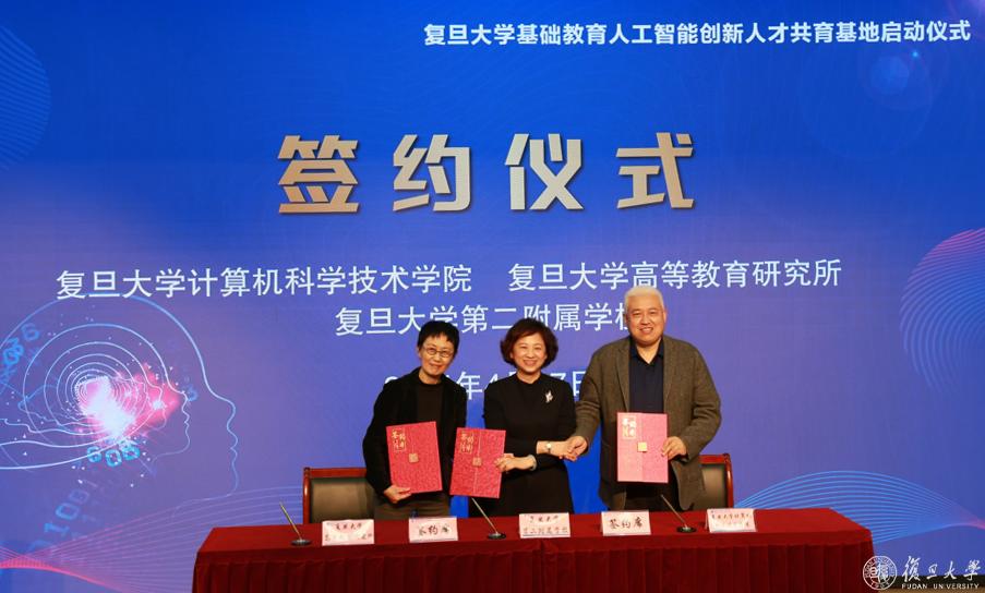4月17日下午,由复旦大学基础教育集团主办,复旦大学第二附属学校承办,复旦大学计算机科学技术学院、复旦大学高等教育研究所协办的“复旦大学基础教育人工智能创新人才共育基地”启动仪式在复旦大学第二附属学校举行。