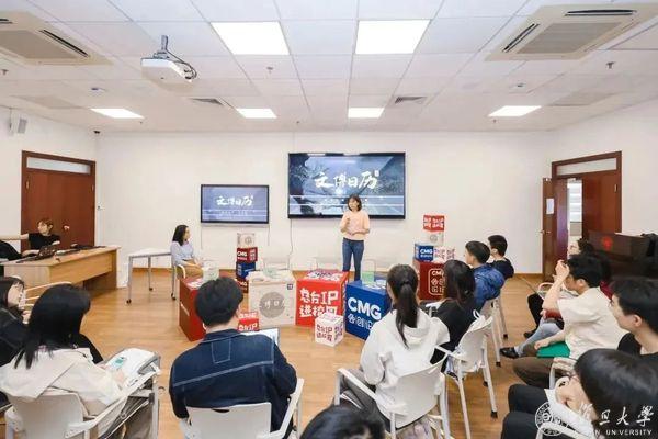 和屏幕里的总台人见一面。“总台人”三个字,包括了哪些工种,蕴含了多少情怀?当《高端访谈》《主播说联播》《中国诗词大会》《文博日历》《中国UP!》《相对论》《夜读》等耳熟能详的总台IP来到同学身边,当主持人、制片人、编导、记者、编辑等工种讲述自己耕耘内容的苦辣酸甜,节目的一幕幕画面已然具象成幕后人员那些挑灯夜战、有笑有泪的工作瞬间,让同学们看到了总台人目光四射、精益求精的信念。