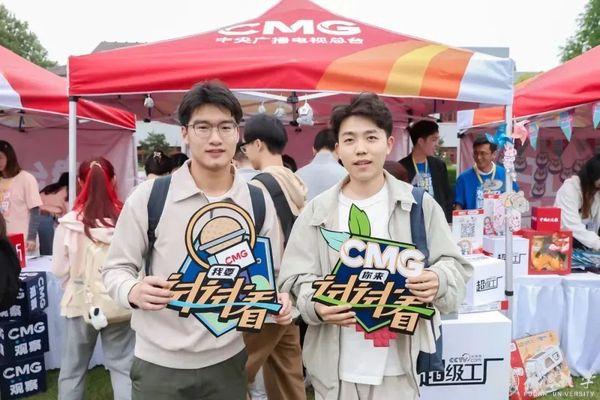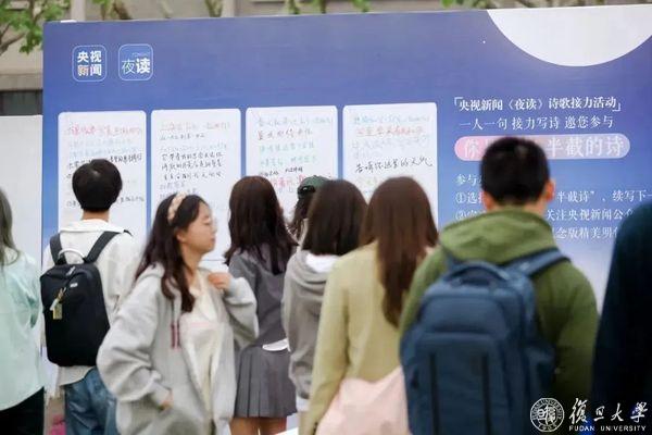 央视新闻《中国UP!》邀请南京红山动物园的沈志军园长现场与同学们交流;《相对论》在报告厅现场连线天南海北的三位采访对象,“天涯共此时”具象化了;参加《文博日历》分享的同学现场策划创意,希望加入创作队伍;停在校园市集续写诗句的《夜读》展板前,你会看到一百种青春与诗意谱写出的限定诗篇;听《主播说联播》现场版,感受语态如何创新、如何跨越……