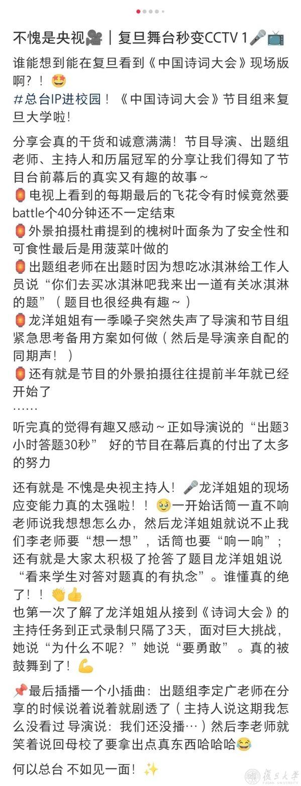 “来复旦就像回娘家”,师姐带着节目回来啦?