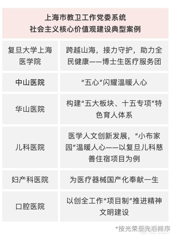 为学习宣传贯彻习近平文化思想和习近平总书记考察上海重要讲话精神,贯彻落实全国和上海宣传思想文化工作会议精神,5月23日上午,上海市教育系统社会主义核心价值观落细落小落实典型案例展在嘉定区举行。此前,市教卫党委公布了100个“上海市教卫工作党委系统社会主义核心价值观建设典型案例”,复旦大学上海医学院共有6个典型案例入选。