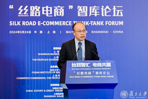5月24日下午,“丝路智汇,电商共赢——‘丝路电商’智库论坛”在复旦大学成功举行。复旦大学副校长陈志敏、上海市商务委员会二级巡视员石小平、杨浦区副区长于洋、哈萨克斯坦贸易和一体化部电子商务发展和数字化局高级专家奥拉扎耶娃·阿依古丽、中央广播电视总台上海总站副站长赵建军、中国信保上海分公司副总经理胡敏等出席智库论坛。国内外知名智库、电子商务及专业服务企业、相关政府部门代表参加论坛。论坛上,“丝路电商”国际智库联盟正式启动。