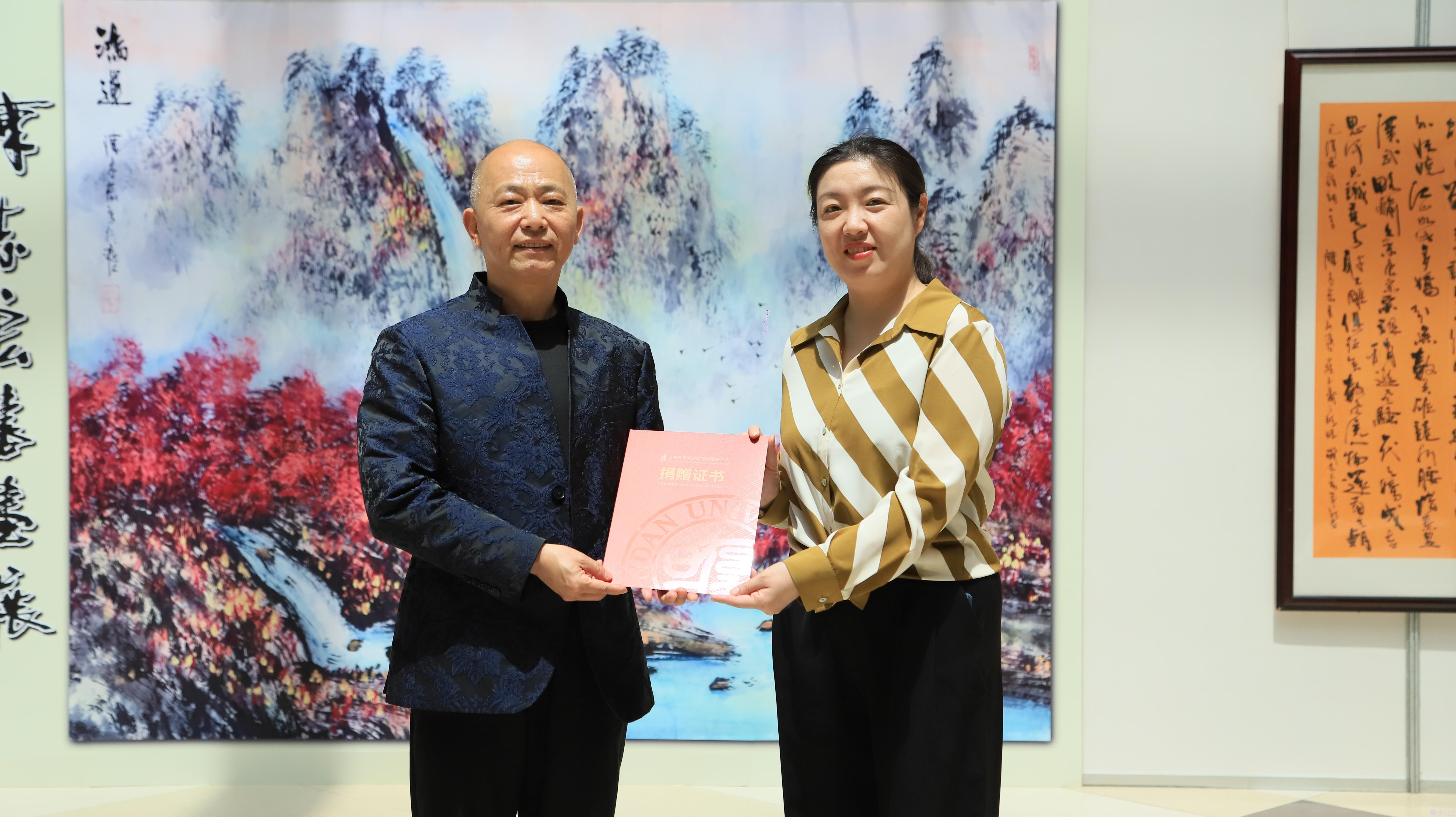 为庆祝复旦大学建校119周年,陈志宏专门书写了校训书法作品及其他书画作品20多幅,无偿捐赠给学校。钱海红代表学校接受了捐赠作品,校外联处副处长陆颖丰向陈志宏颁发了捐赠证书,以感谢他对学校美育工作的关心和支持。陈志宏还特意准备了亲手书写的寓意吉祥的“福”字赠送给现场师生。