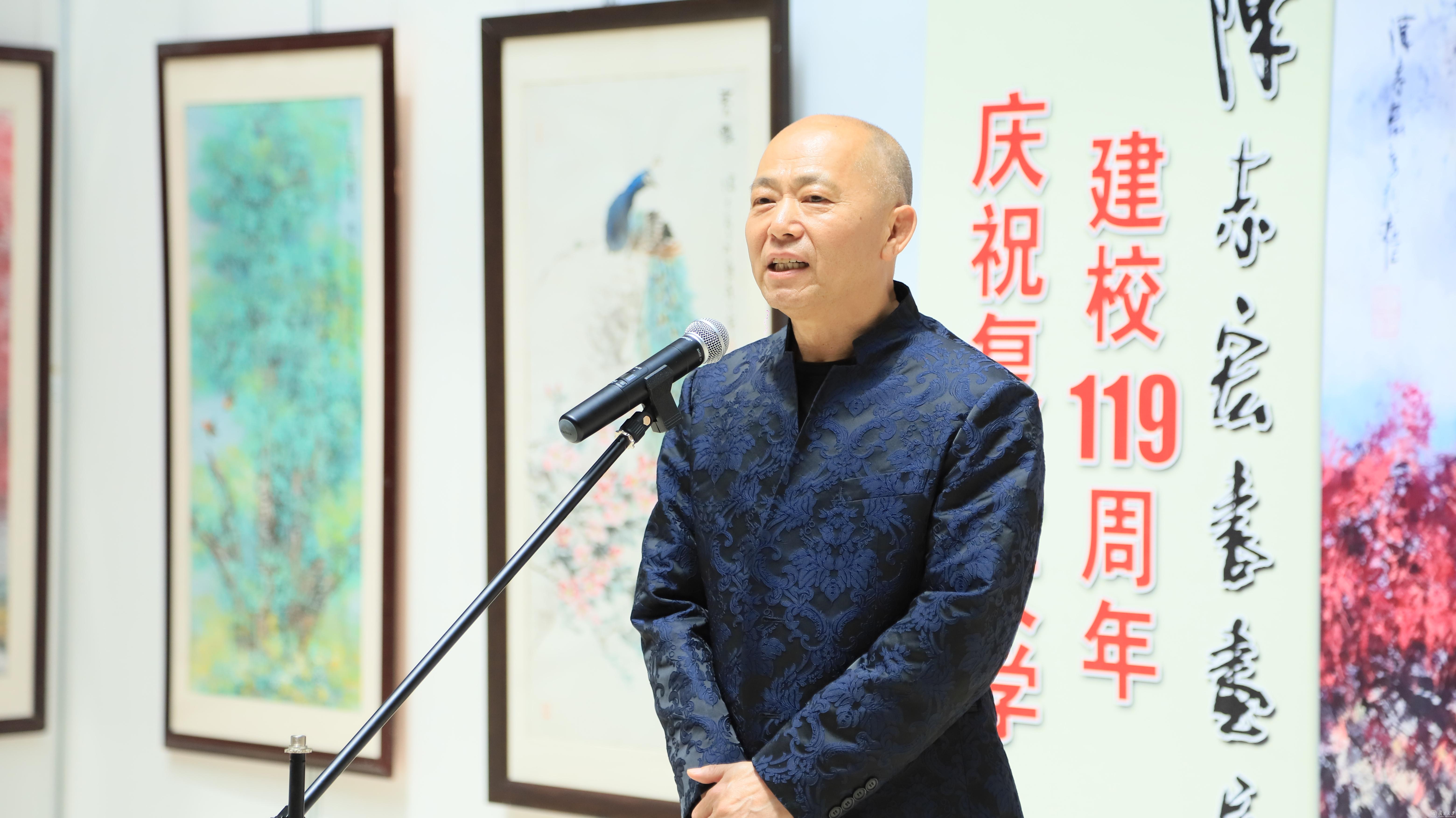开幕式上,校党委副书记钱海红致开幕辞。她表示,书法、绘画是中国传统文化的重要组成部分,承载着丰厚的历史底蕴和人文情怀。复旦大学始终坚持厚植文化育人的沃土,去年开始更是着力推进 “文化校历”示范引领品牌,培养“卓越而有趣”的复旦人。此次书画展既是庆祝复旦大学建校119周年的专项活动,也是响应学校“以文化人”要求,加强分校区文化建设的一大举措。她对陈志宏受邀布展表示感谢,希望师生们在科研生活之余更多地接触和欣赏艺术作品,领略中华优秀传统文化魅力。