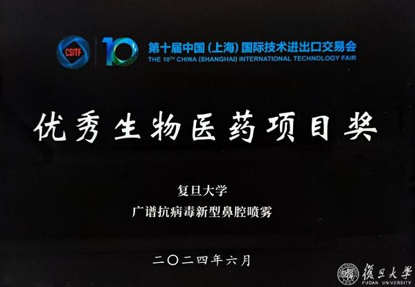 6月12日至14日,第十届中国(上海)国际技术进出口交易会(以下简称“上交会”)在上海世博展览馆举办。复旦大学有7个项目成果亮相本届上交会,“广谱抗病毒新型鼻腔喷雾”成果获得上交会“优秀生物医药项目奖”。