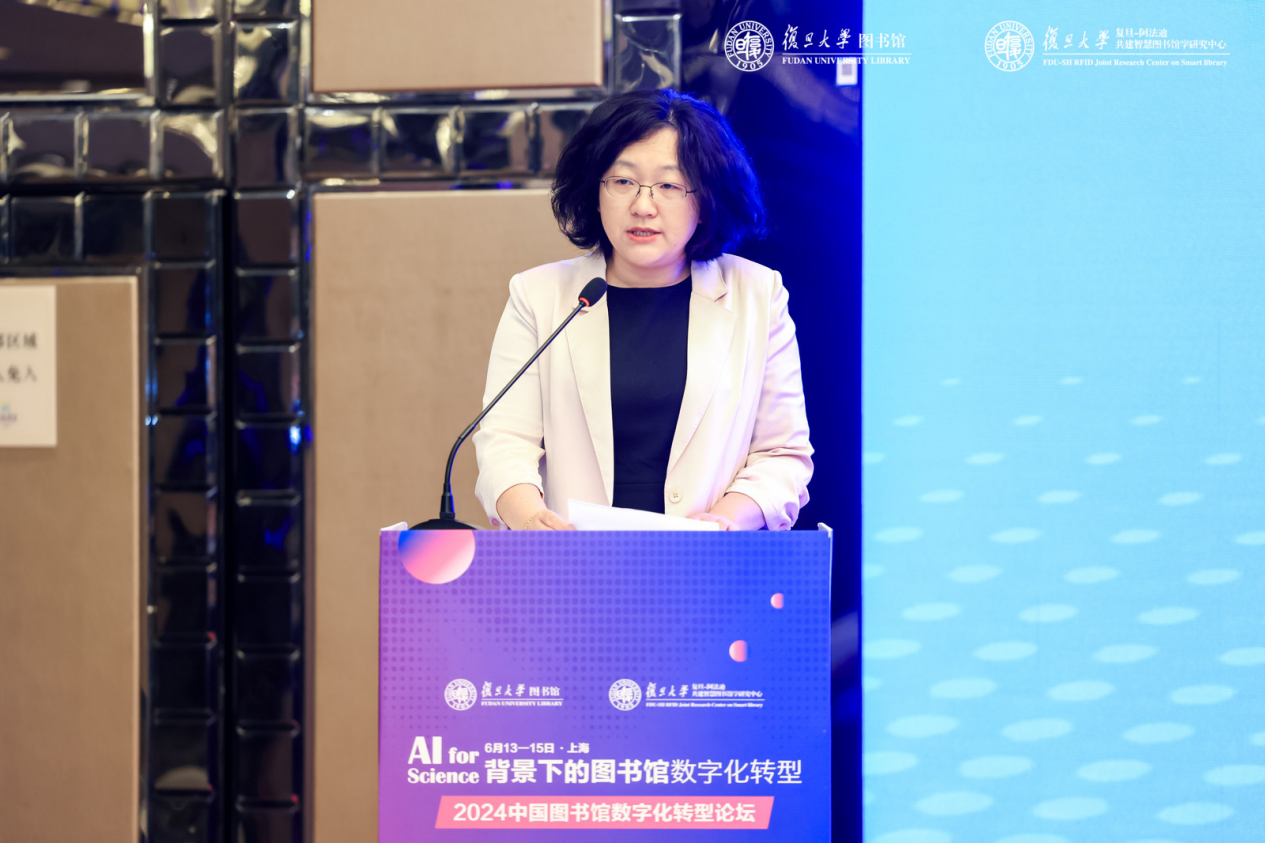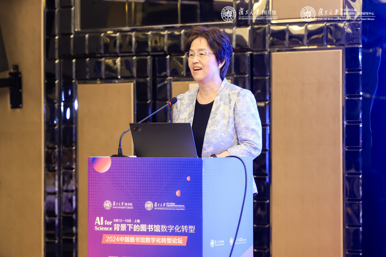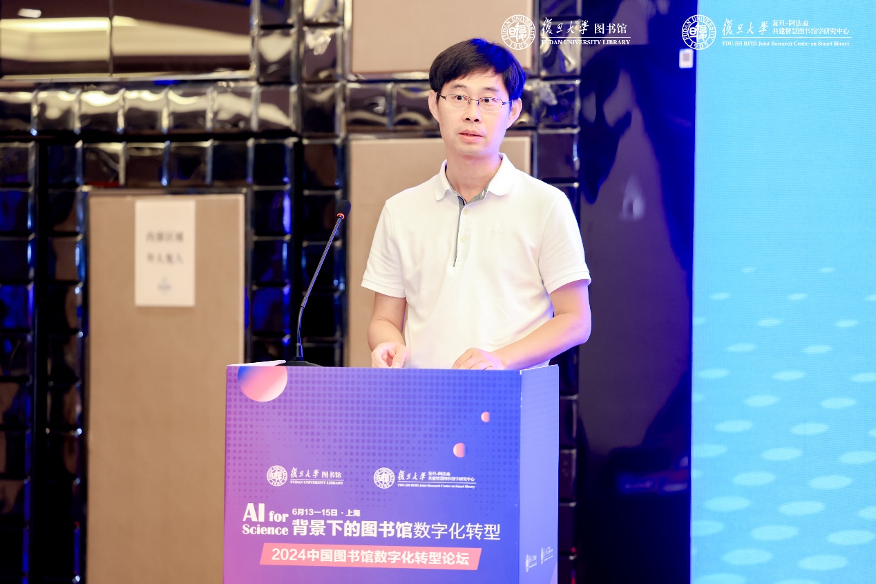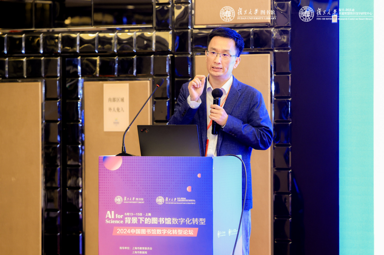 陈志敏代表复旦大学对各位代表表示热烈欢迎。陈志敏指出,人工智能的蓬勃发展将为科研领域带来新质生产力,助力实现中国式现代化。他对图书馆数字化转型提出了四点展望:一是图书馆要建设自己的专题数据库,助力垂直领域的AI应用开发;二是图书馆数据资源要服务教学和科研;三是通过与政府、企业等进一步合作,共享数据资源和算力,为教学科研提供支撑;四是在图书馆业务领域开发垂直领域大模型,全面提升图书馆的能力。