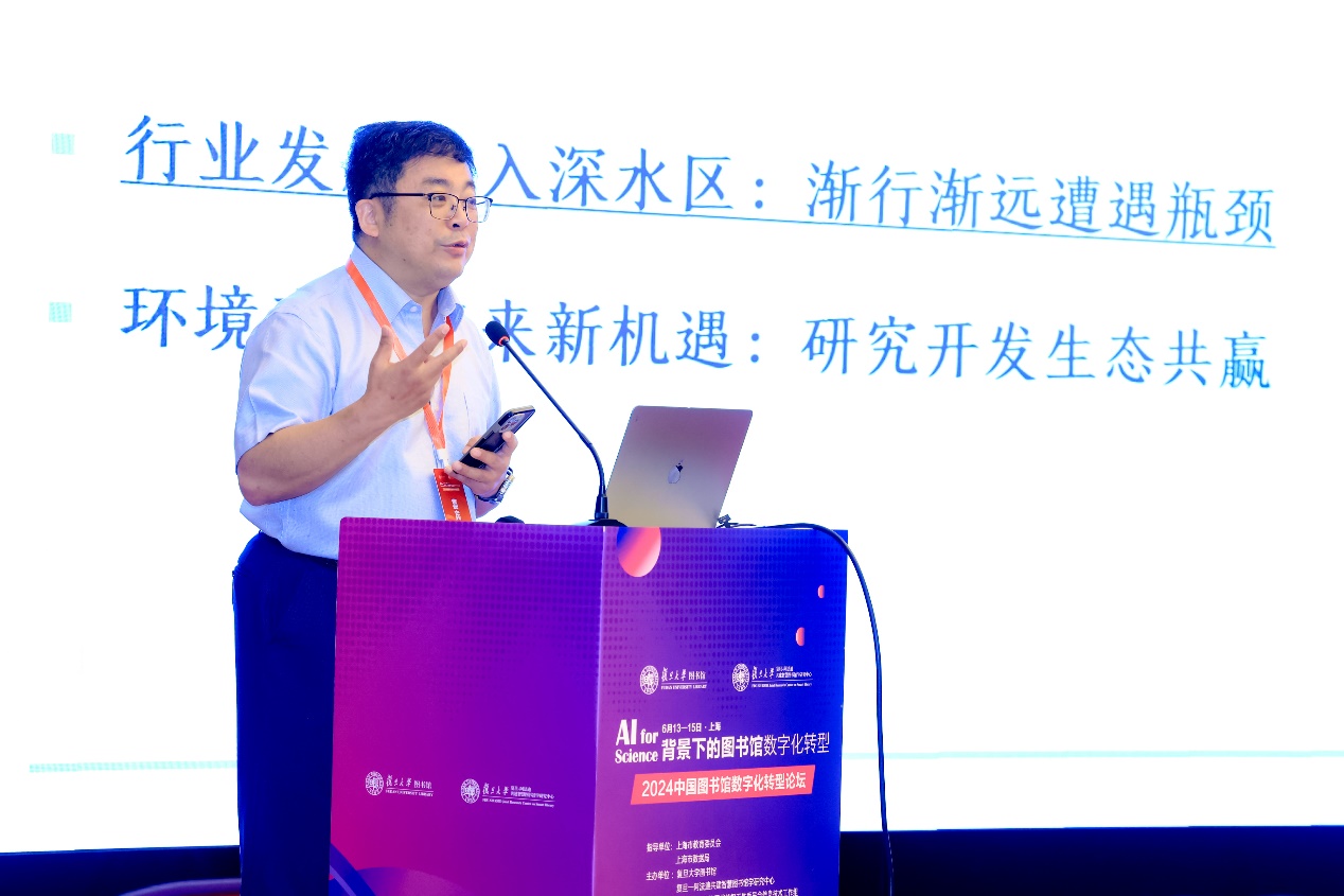 6月14日,“2024中国图书馆数字化转型论坛”在上海开幕。来自政府、教育界、图情界、研究机构以及企业界近300名代表聚焦“AI for science背景下的图书馆数字化转型”议题,探讨在学科交叉融合和创新、构建开放科学生态的背景下,图书馆如何把握人工智能前沿技术,加强自身能力建设,开展数字素养教育,支持科研与探索,实现数字化转型。