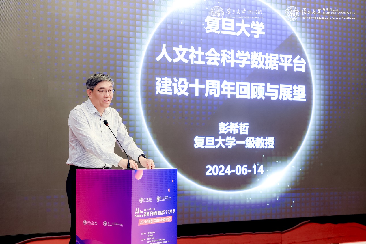 彭希哲作《十年回顾与展望报告》,详细介绍了平台和数据服务的发展建设历程,并对数据科学的未来发展表达了期待,陈思和发表了十年来图书馆支持学校教学科研工作的感想。