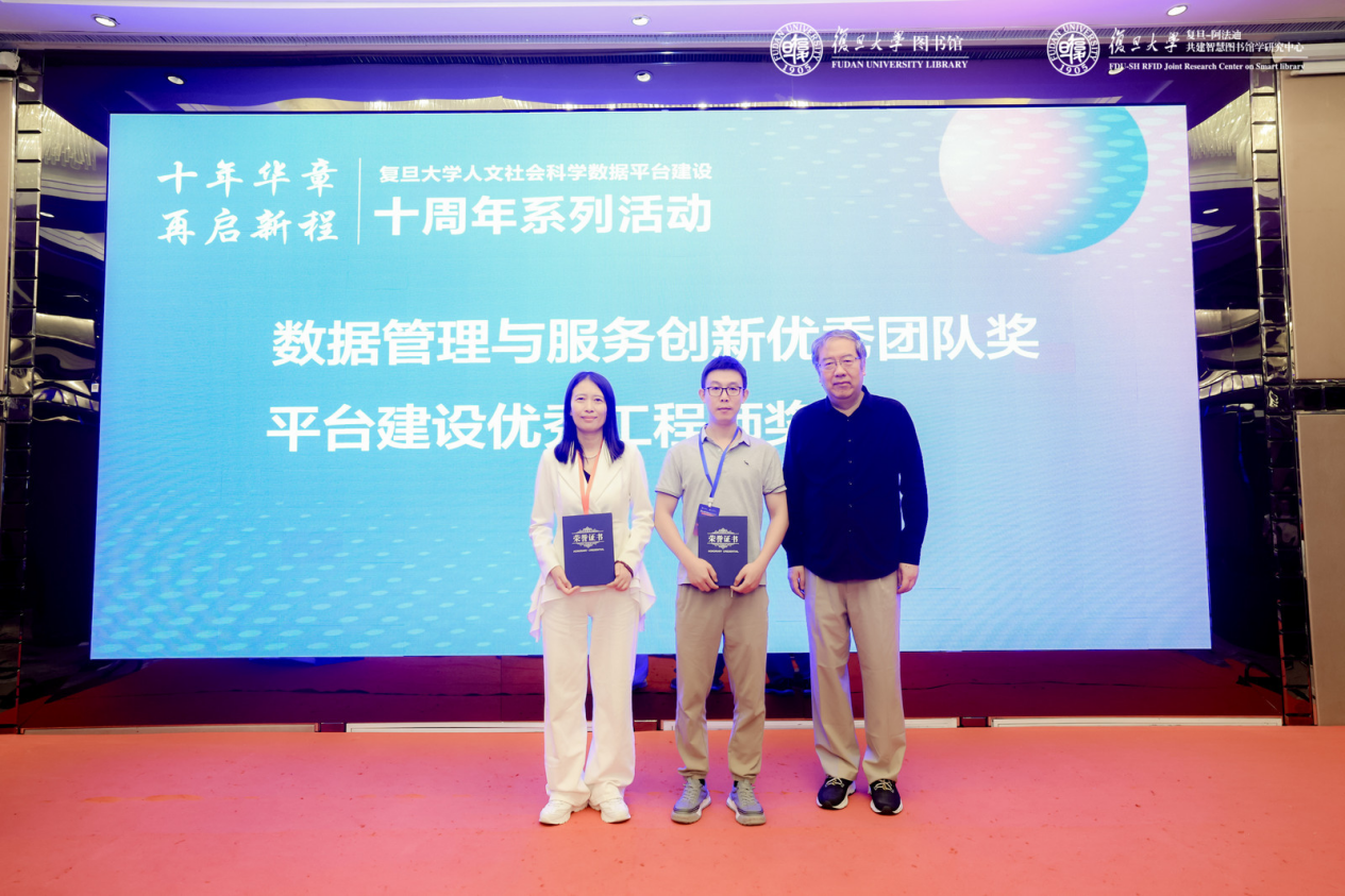 本次论坛包括开幕式、大会报告和“AI视域下的科学数据管理”和“图书馆数字化转型能力建设“两个分论坛等议程。今年是复旦大学人文社会科学数据平台启动建设十周年,开幕式中还举办了“十年华章,再启新程:复旦大学人文社会科学数据平台十周年活动仪式”。彭希哲、陈思和两位教授获“复旦大学人文社科数据平台十年卓越贡献奖”,潘克西教授、潘晓声副教授、长三角社会变迁调查研究团队、当代中国社会生活资料团队获“创新应用奖”;汪东伟老师获“平台建设优秀工程师”;国家卫生健康委流动人口服务中心、上海市大数据中心信息化服务第二分中心获 “最佳数据合作单位奖”; “中国高校研究数据管理推进工作组”成员单位获“中国高校研究数据管理推进工作组十年纪念奖”。