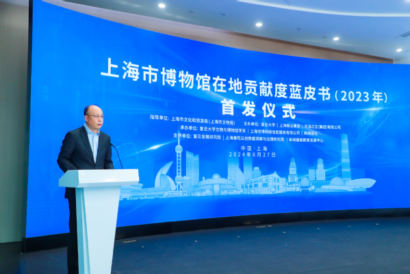 6月27日,《上海市博物馆在地贡献度蓝皮书(2023年)》首发仪式于上海报业集团融媒创新空间举行。上海市文化和旅游局(上海市文物局)、复旦大学、东浩兰生(集团)有限公司、上海报业集团、各区文旅(文物)主管部门和50余家文博场馆的领导、嘉宾共同出席。本蓝皮书系复旦大学携手东浩兰生(集团)有限公司等共同打造,并经由复旦大学文物与博物馆学系和上海世博网络信息服务有限公司联合出品,且于今日在全市、全国、全球首次发布。