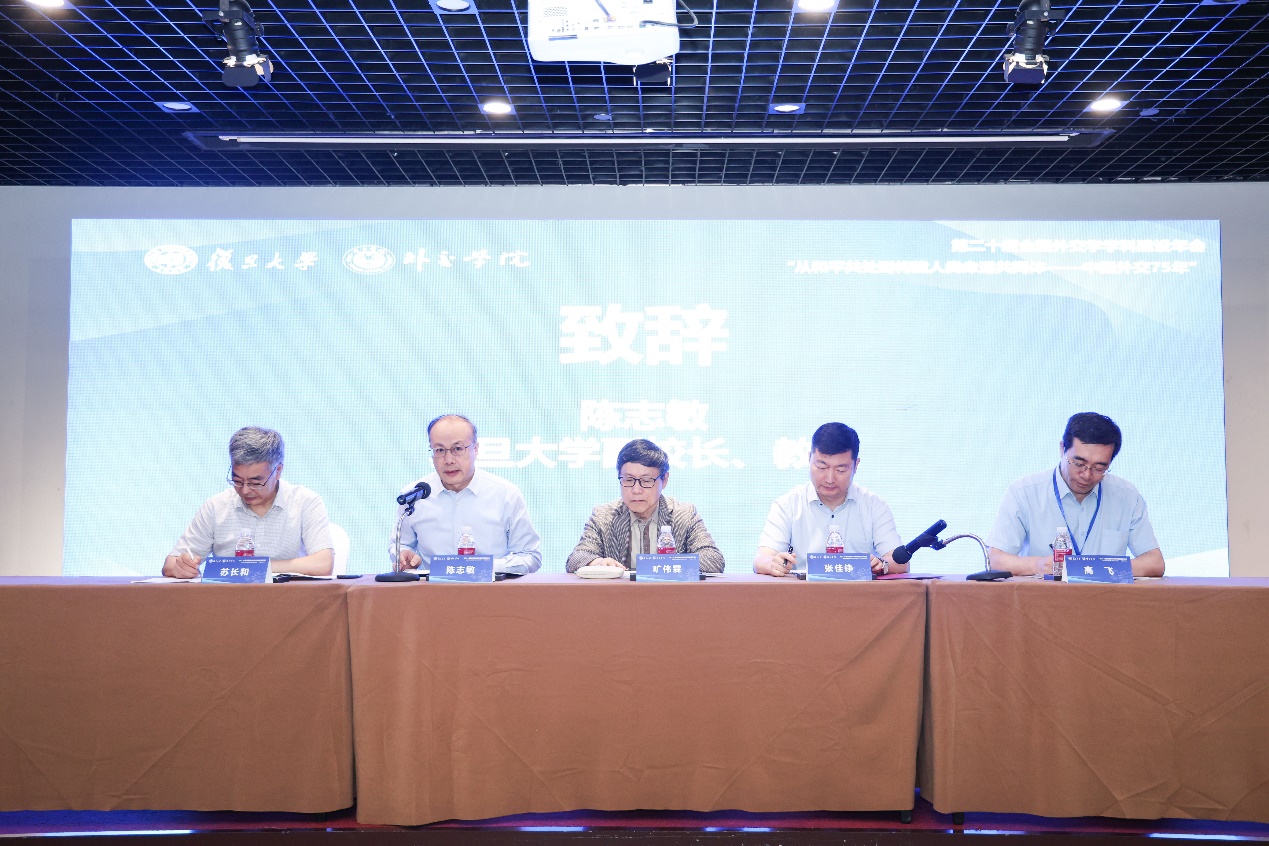 6月28日,和平共处五项原则发表70周年纪念大会在北京隆重举行,国家主席习近平出席纪念大会并发表题为《弘扬和平共处五项原则,携手构建人类命运共同体》的重要讲话。6月29-30日,以“从和平共处到构建人类命运共同体——中国外交75年”为主题的第二十届全国外交学学科建设年会在上海召开。本届年会由复旦大学和外交学院主办,中华人民共和国外交史学会协办,复旦大学国际关系与公共事务学院承办。外交部政策规划司参赞张佳铮,中华人民共和国外交史学会会长、原驻非盟大使旷伟霖,原驻卢森堡、马达加斯加大使杨小茸,原驻挪威、斯里兰卡大使易先良,复旦大学副校长陈志敏,外交学院副院长高飞,以及来自中共中央党校、北京大学、中国人民大学、清华大学、武汉大学、中山大学、南开大学、同济大学、吉林大学、国防科技大学、上海外国语大学和外交学院、复旦大学等机构的八十余位学者出席年会。