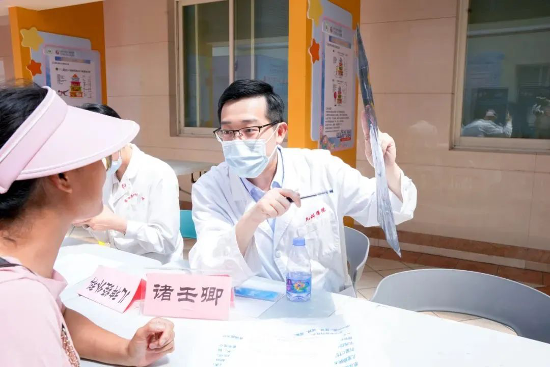 7月6日上午,博医团在郑州大学第三附属医院门诊开展便民义诊,诊疗台前,医生们被团团围住,患者的问题一个接一个。义诊得到当地群众的积极响应,累计接受健康咨询近500余人次。
